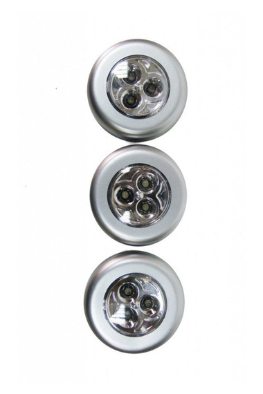 Особенности изделия: Комплектация: 3 светильника, инструкция по применению. Диаметр светильника 6,5 см. Диаметр одного осветительного элемента - 0.5 см. Материал: пластик, металл Работают от 3 батареек ААА типа (не входят в комплект). Максимальная мощность светильника: 0,2W 20Lm, класс защиты: III, тип ламп: 3 LED through-hole leds (Диоды сквозного монтажа)